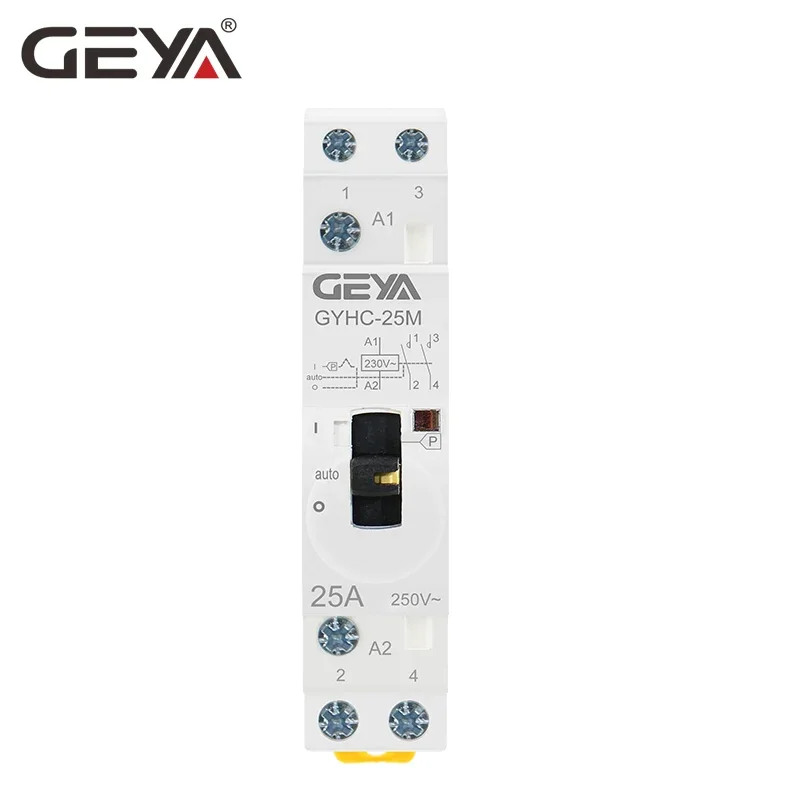GEYA GYHC modüler kontaktör 2P 16A 20A 25A 2NO veya 2NC 220V manuel kontrol ev kontaktör Din demiryolu tipi
